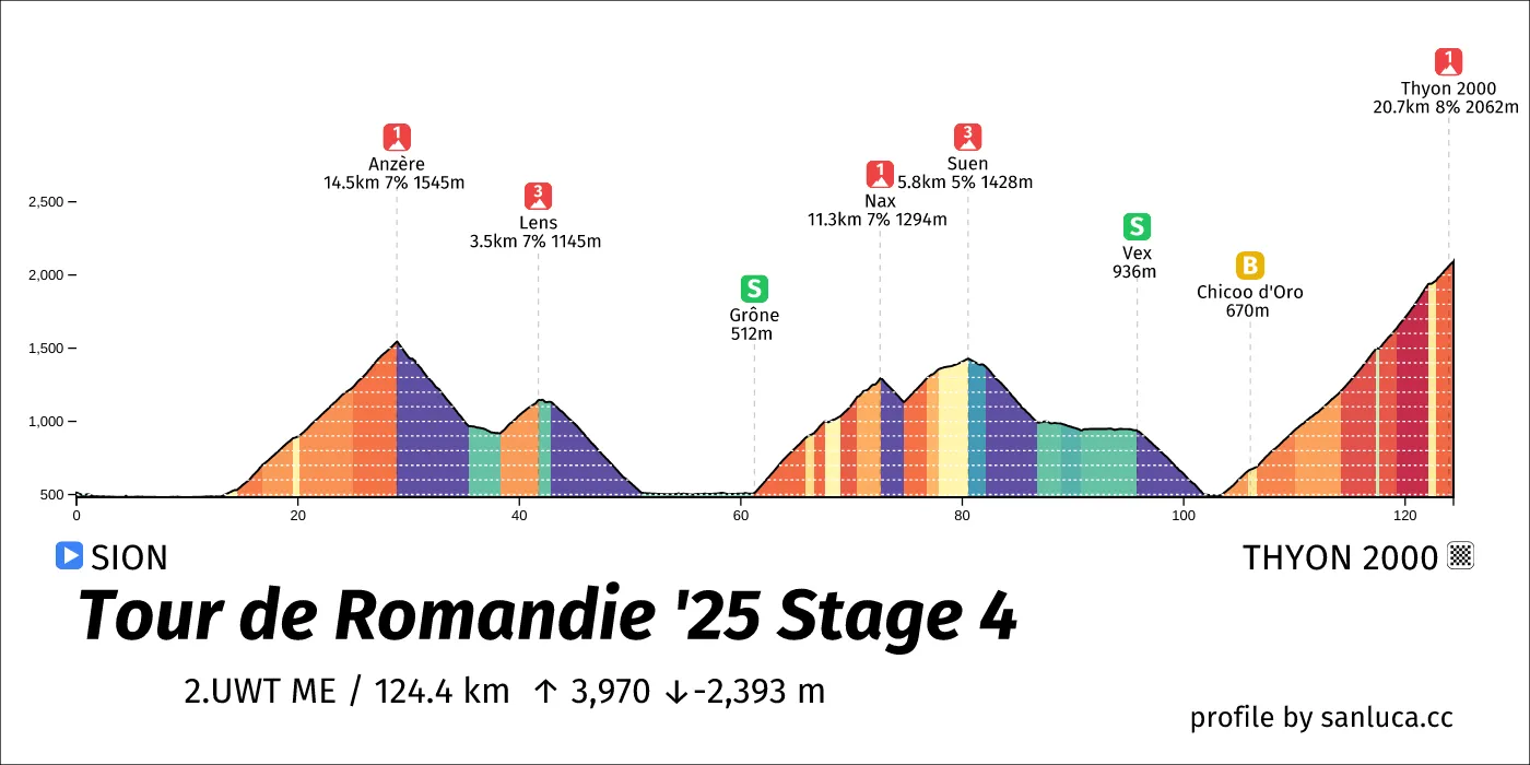 Stage 4 of the 2025 Tour de Romandie was a mountain stage that took place on .