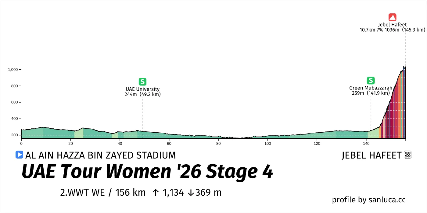 Stage 4 of the 2026 UAE Tour Women is a notdone stage that will take place on .