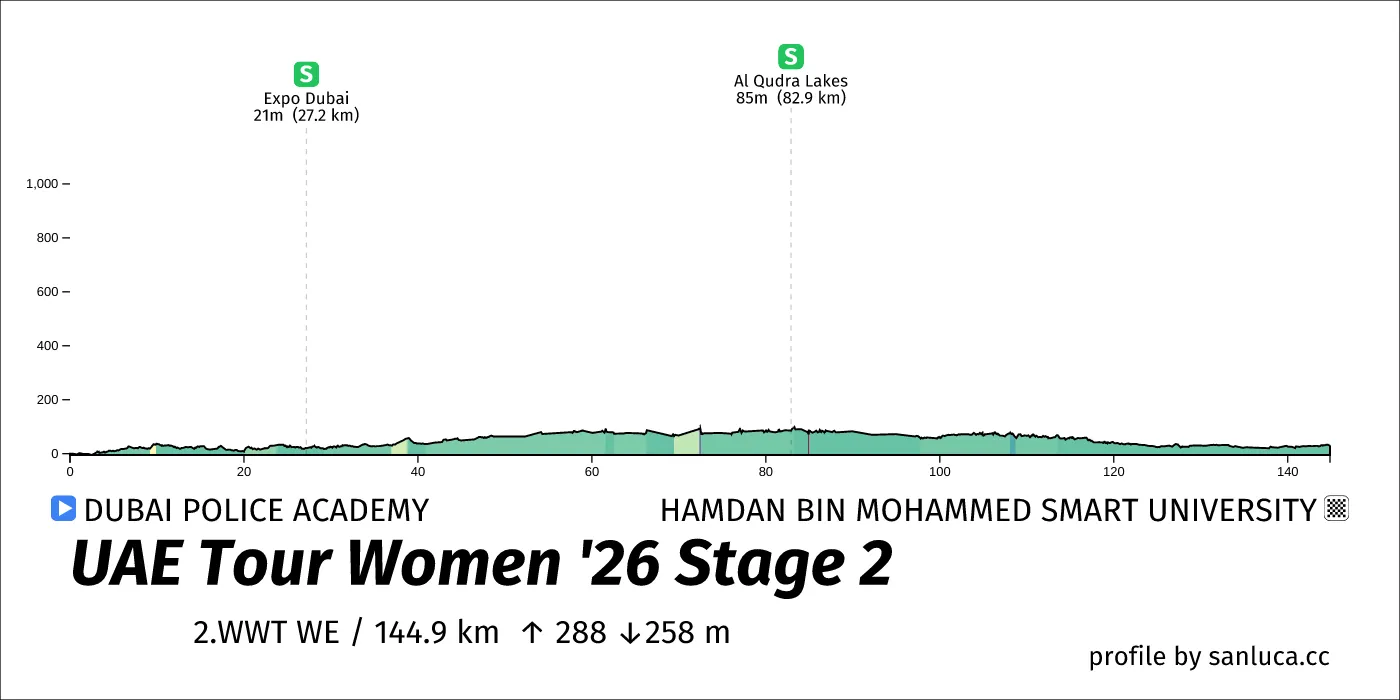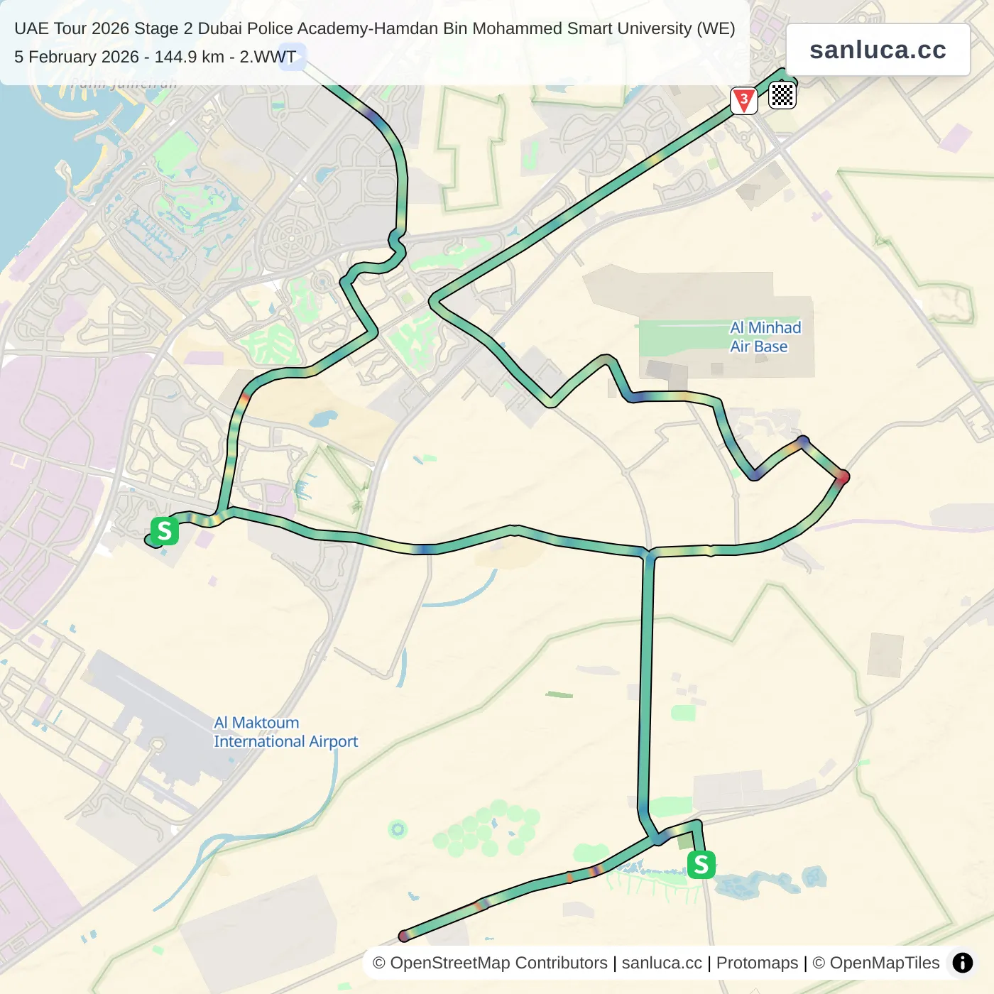 UAE Tour 2026 Stage 2 Dubai Police Academy-Hamdan Bin Mohammed Smart University (WE) | Roadbook by sanluca.cc - sanluca.cc Roadbook